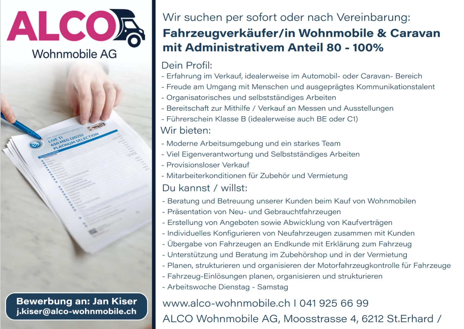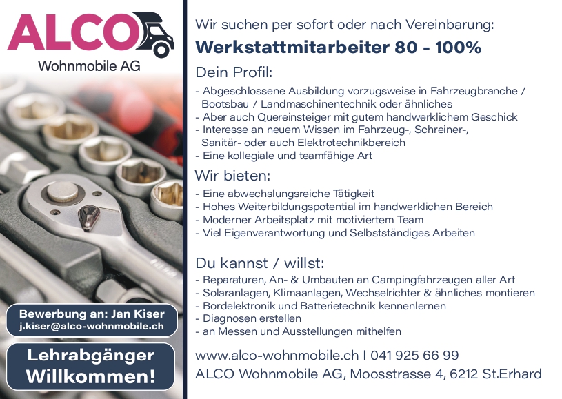 041 925 66 99 oder info@alco-wohnmobile.ch